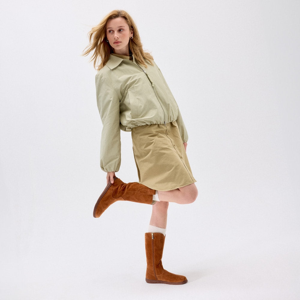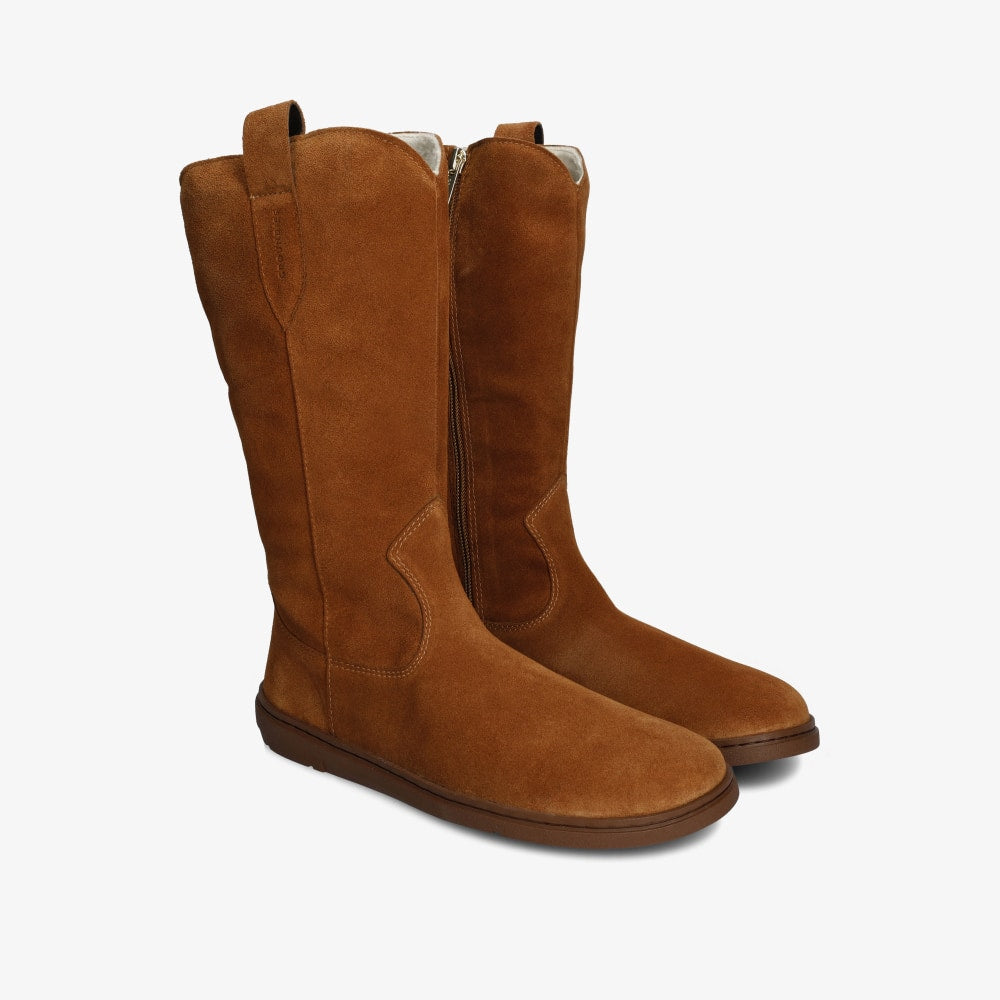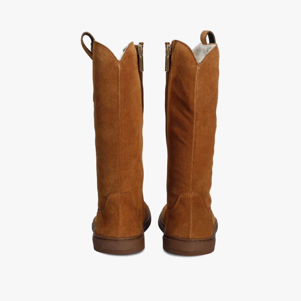 Made from soft nubuck leather , with a warm textile lining and an inner zipper for easy fitting.