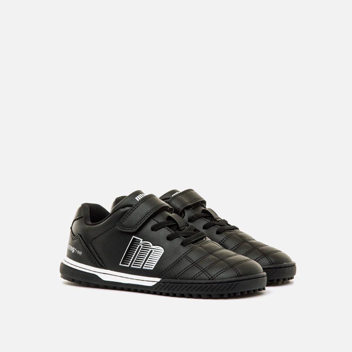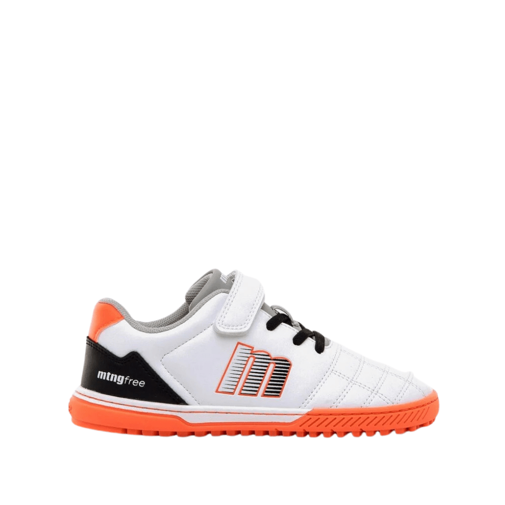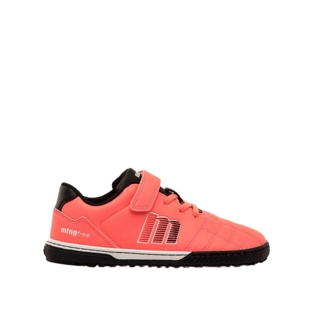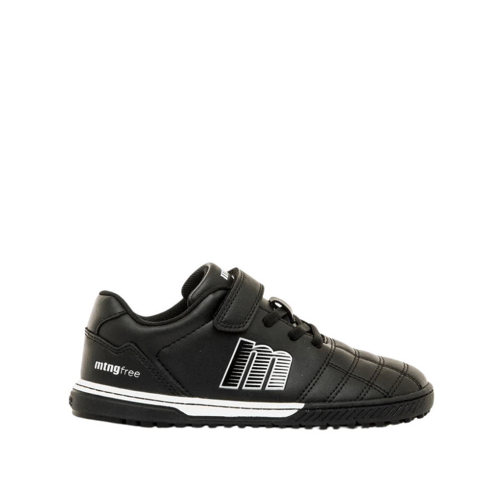Las zapatillas de fútbol barefoot Mustang Action Futbol están diseñadas para el movimiento natural del pie infantil, con puntera ancha, suela flexible con pequeños tacos para mejor agarre y plantillas extraíbles que facilitan comprobar la talla. Su cierre adhesivo reforzado y cordones elásticos ofrecen autonomía y ajuste seguro, mientras que la puntera reforzada asegura durabilidad frente a la abrasión.