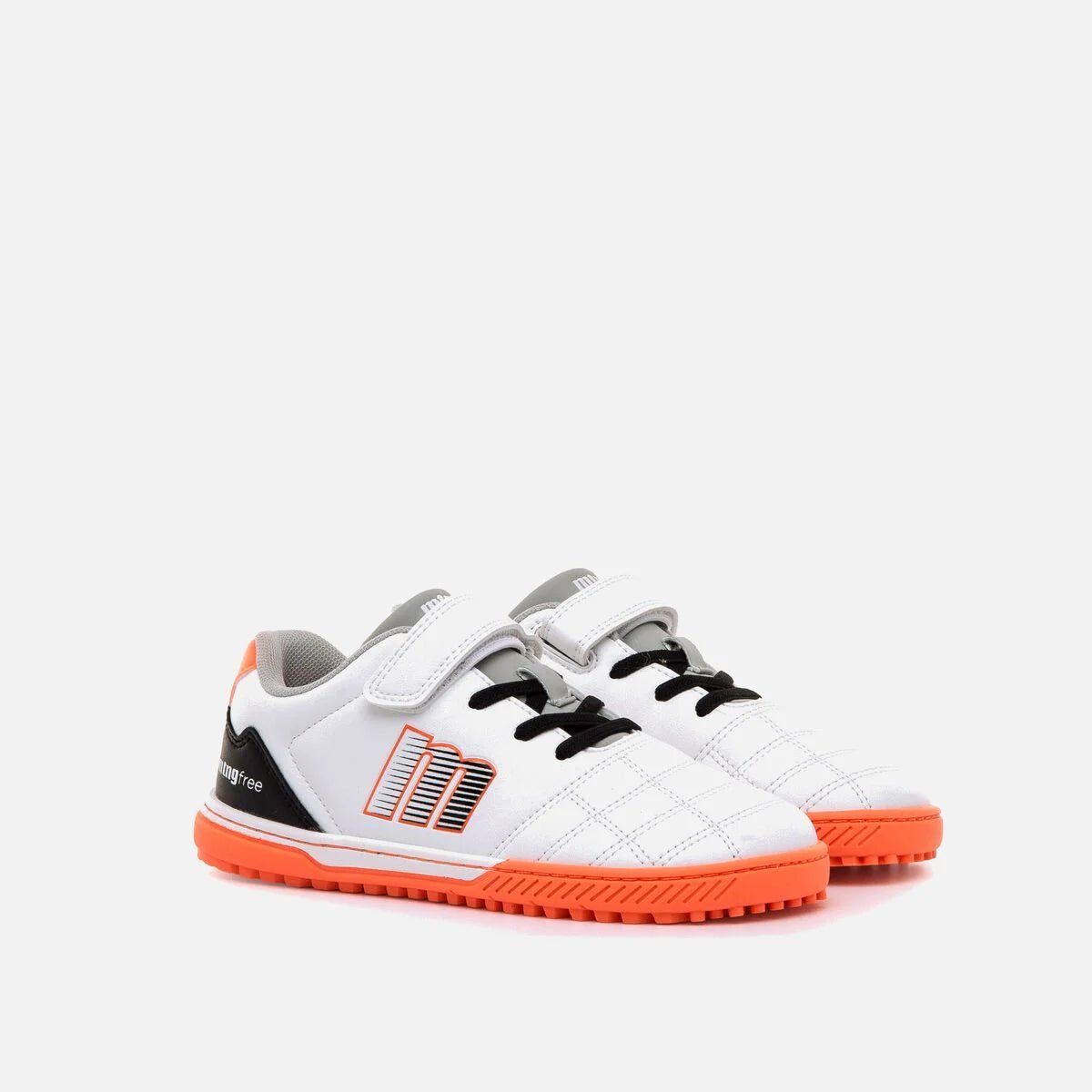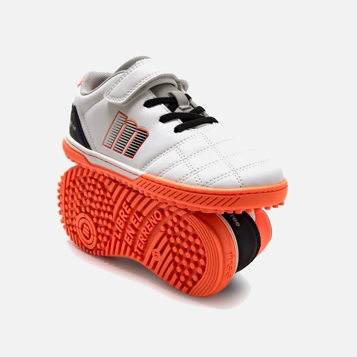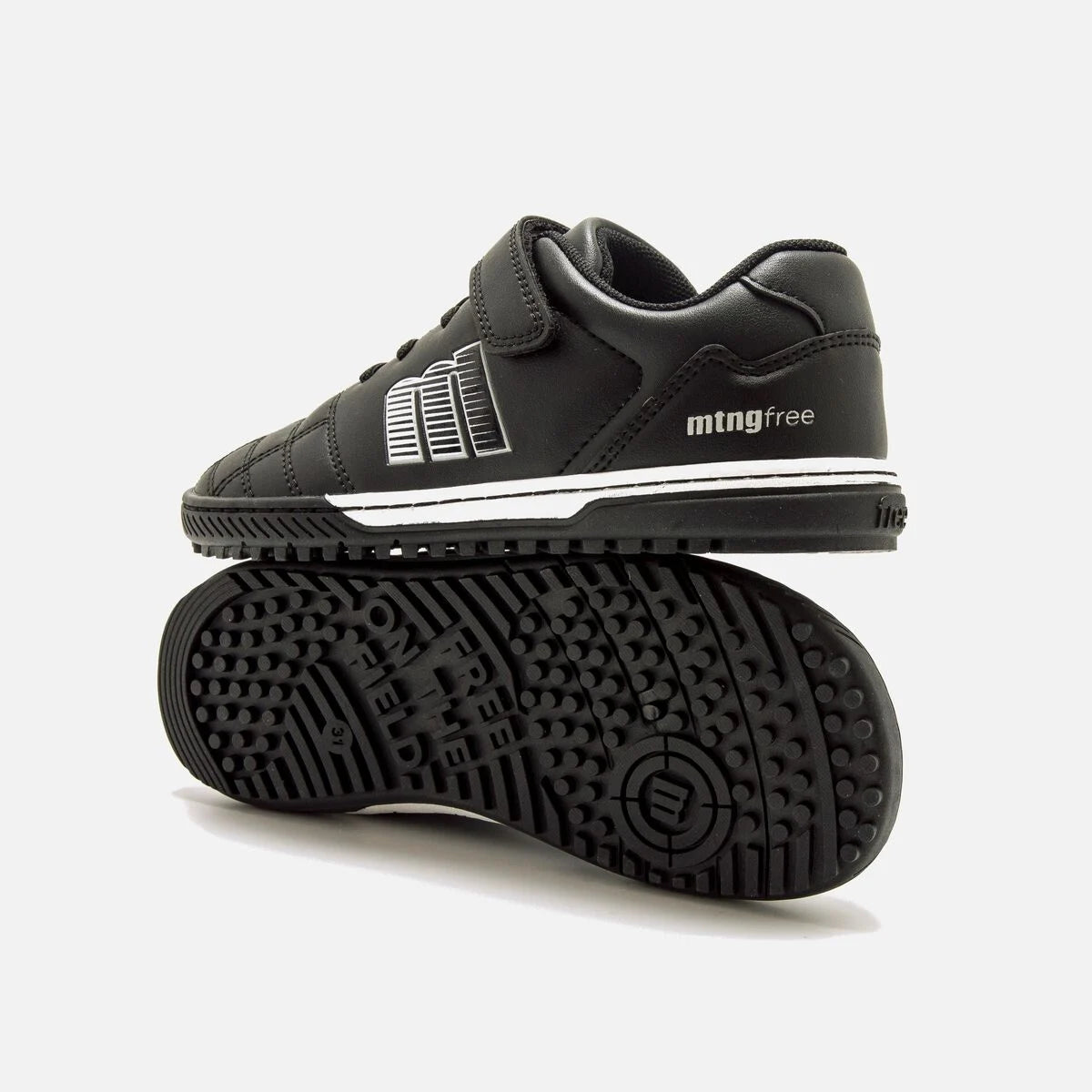 Las zapatillas de fútbol barefoot Mustang Action Futbol están diseñadas para el movimiento natural del pie infantil, con puntera ancha, suela flexible con pequeños tacos para mejor agarre y plantillas extraíbles que facilitan comprobar la talla. Su cierre adhesivo reforzado y cordones elásticos ofrecen autonomía y ajuste seguro, mientras que la puntera reforzada asegura durabilidad frente a la abrasión.