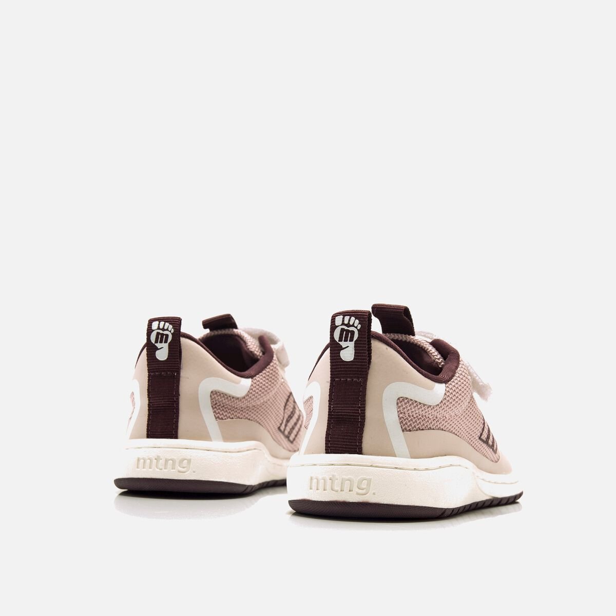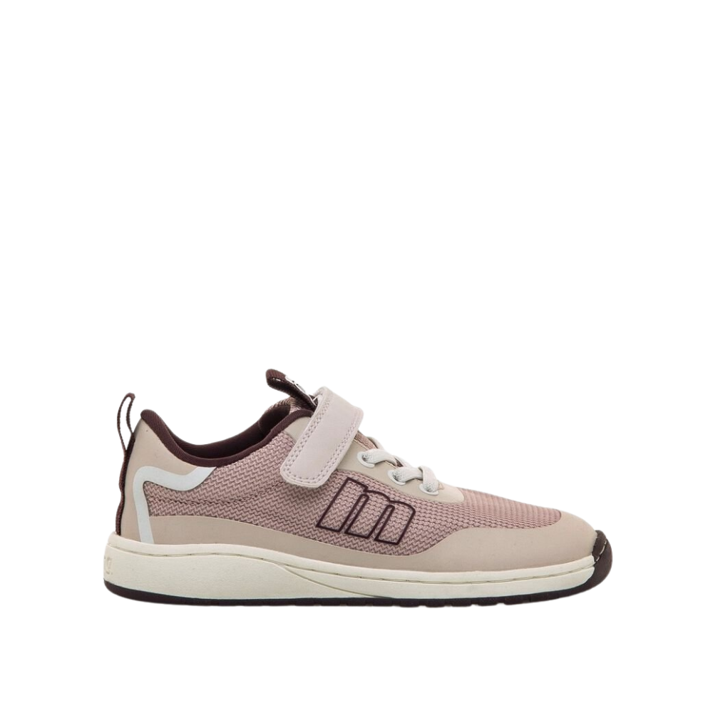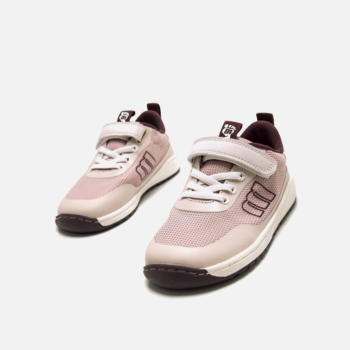 Cierre de cordones jaspeados de colores rosa pastel y blanco. Incluye cierre de tira adhesiva para una puesta más fácil e independiente. Logo de la marca bordado en el lateral. Cómoda suela dentada para una pisada más estable.Diseñado y desarrollado especialmente en colaboración con el Dr. Juanjo López, traumatólogo deportivo e infantil, para respetar el desarrollo natural del pie del niño y la niña.