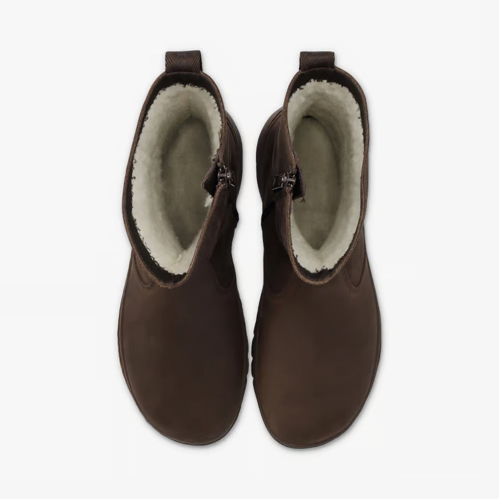 La Odessa es una bota barefoot con estilo vintage encerado, fabricada en cuero Crazy Horse resistente e hidrófugo. Su forro de lana natural mantiene el calor en invierno, mientras la suela TrueSense® GX2 (8,5 mm de altura) ofrece agarre, flexibilidad y confort natural.