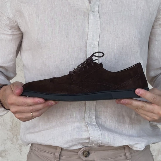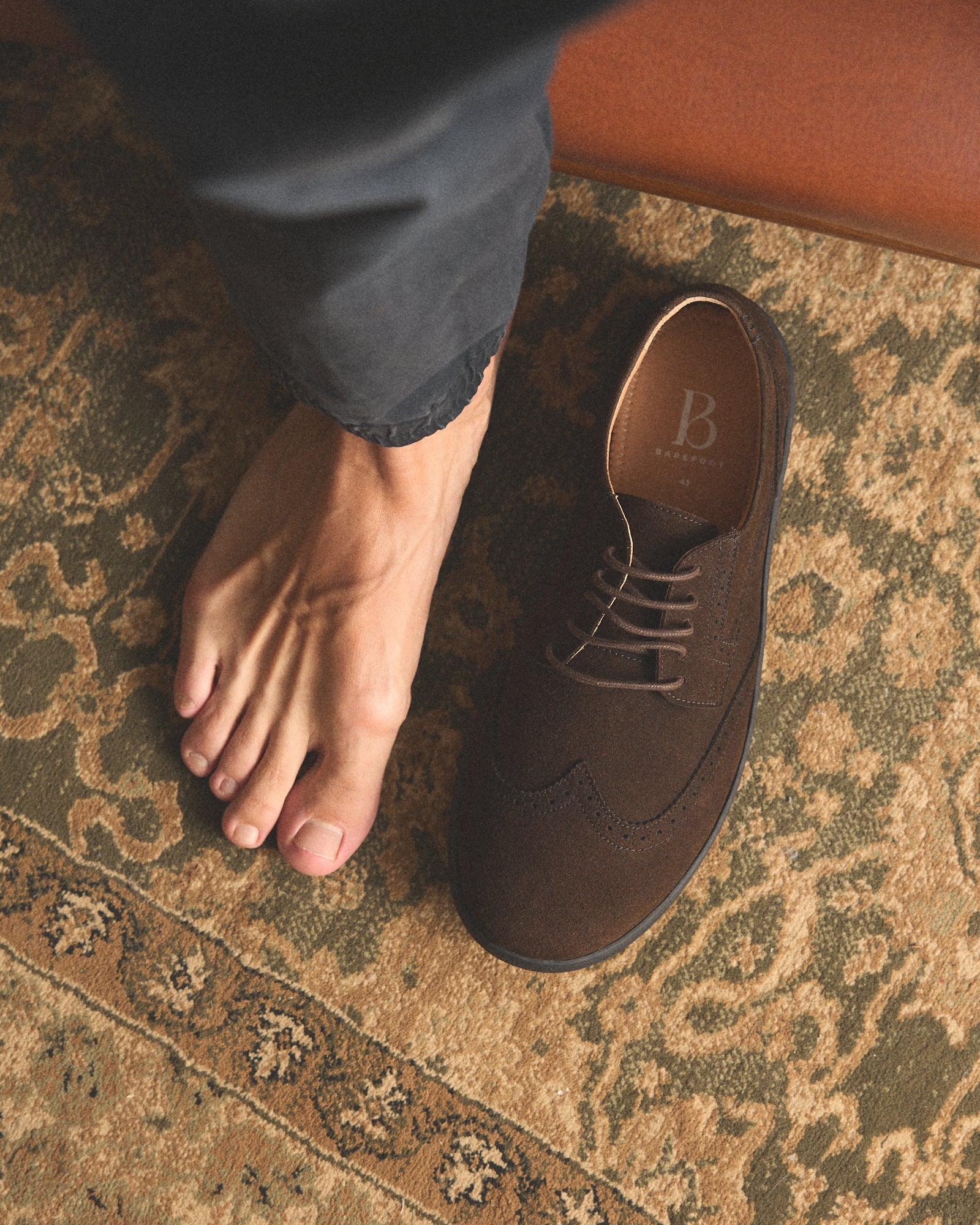 El Bruno de Barevene es un zapato barefoot para hombres de estilo clásico, fabricado con fibras de piel de vacuno y poliester artesanalmente en España con materiales reciclados. Incorpora suela fina, flexible y 0 drop que favorece una pisada natural, junto a un interior textil transpirable sin elementos rígidos. Una opción cómoda, elegante y sostenible para el día a día.