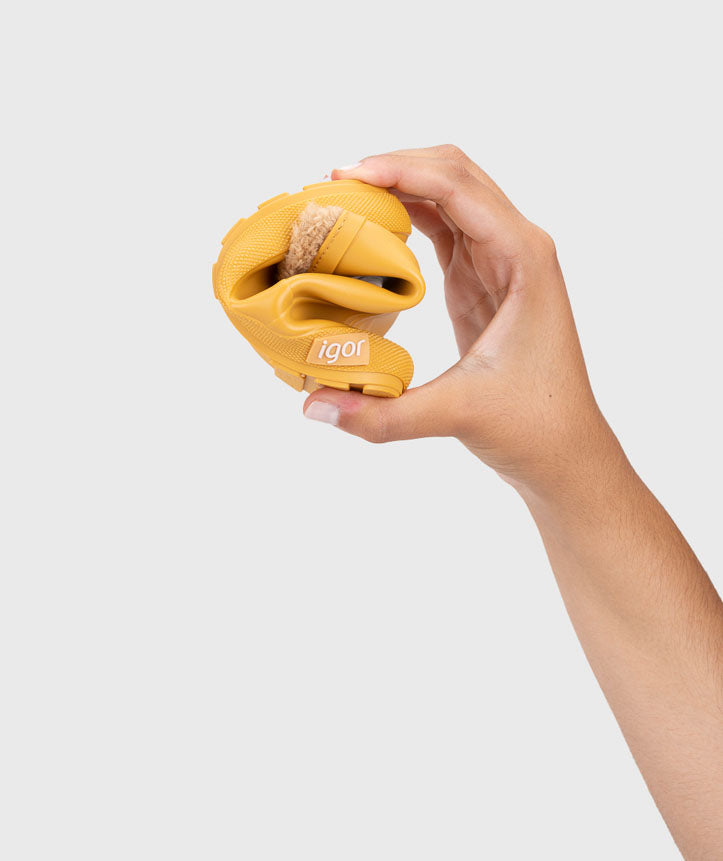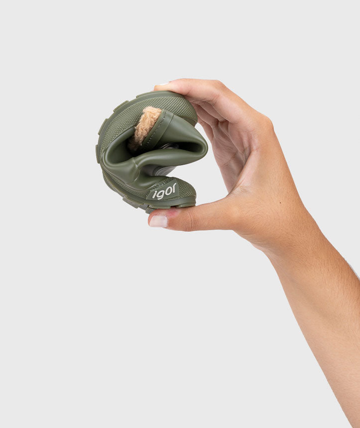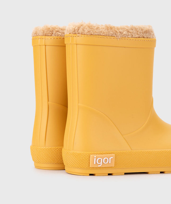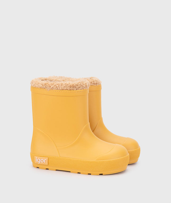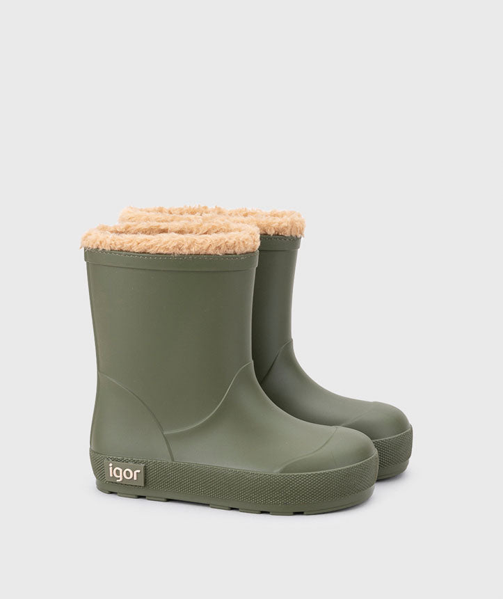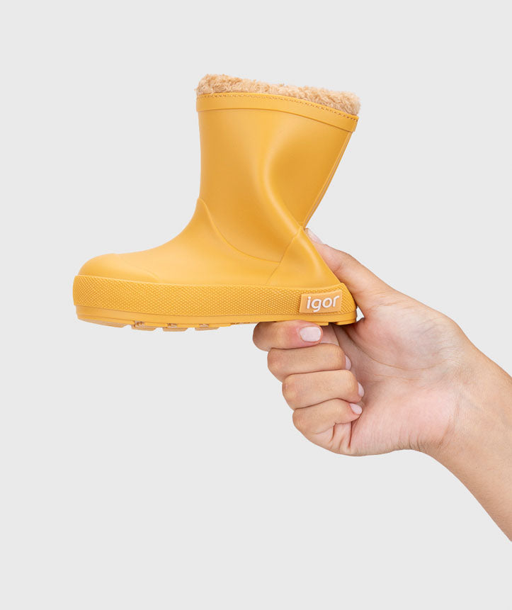 Bota de agua monocolor en acabado mate, de concepto barefoot, cero drop, flexible, blandita, forro de borreguito e impermeables.